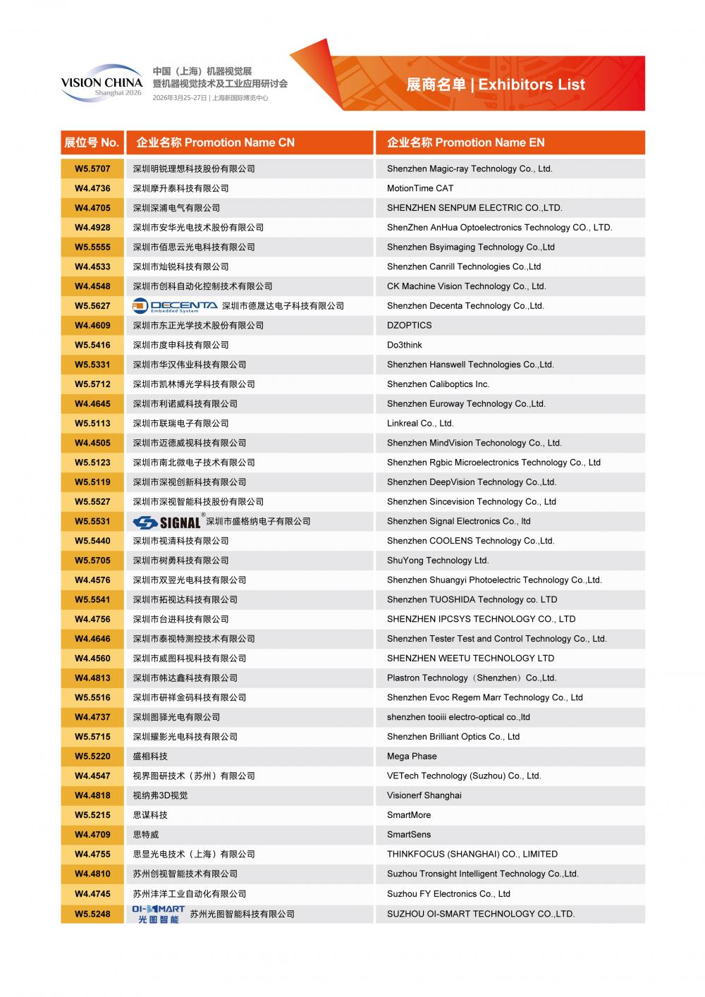 2026年3月25-27日,亚洲机器视觉领域风向标——Vision China 2026(上海)机器视觉展,即将于上海新国际博览中心W4&W5馆震撼启幕!展会将全面展示机器视觉技术在工业自动化、智能制造、半导体、3C电子、汽车工程、智慧物流、医疗健康、安防监控等多个领域的广泛应用与创新成果,更以其独特的“VISION+AI+机器人”主题,引领行业迈向智能化、自动化的新纪元。