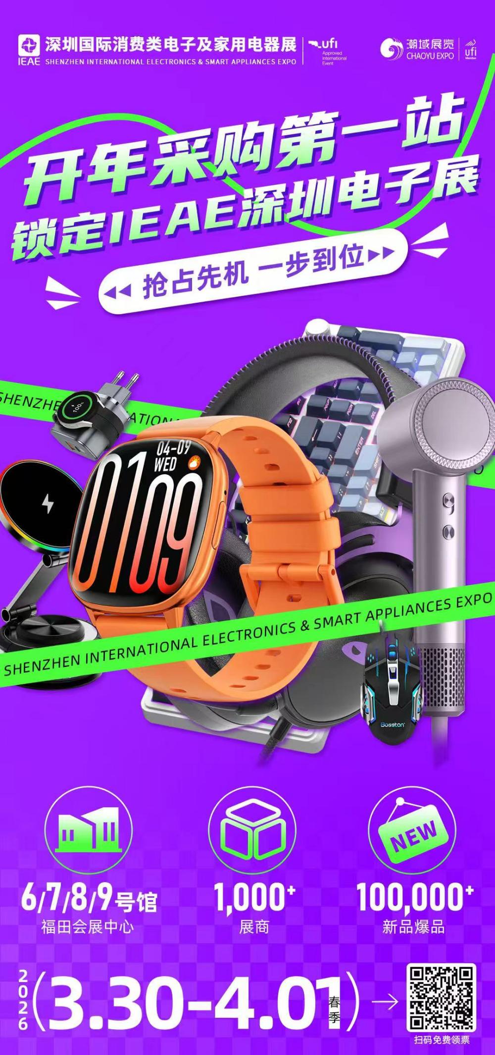 阳春三月,开年采购第一站!2026 IEAE深圳电子展即将盛大开幕,汇聚千家展商,打造高效商贸平台,助力全球采购商一站式网罗万款新品。预登记通道现已全面开启,扫码立即领票!。