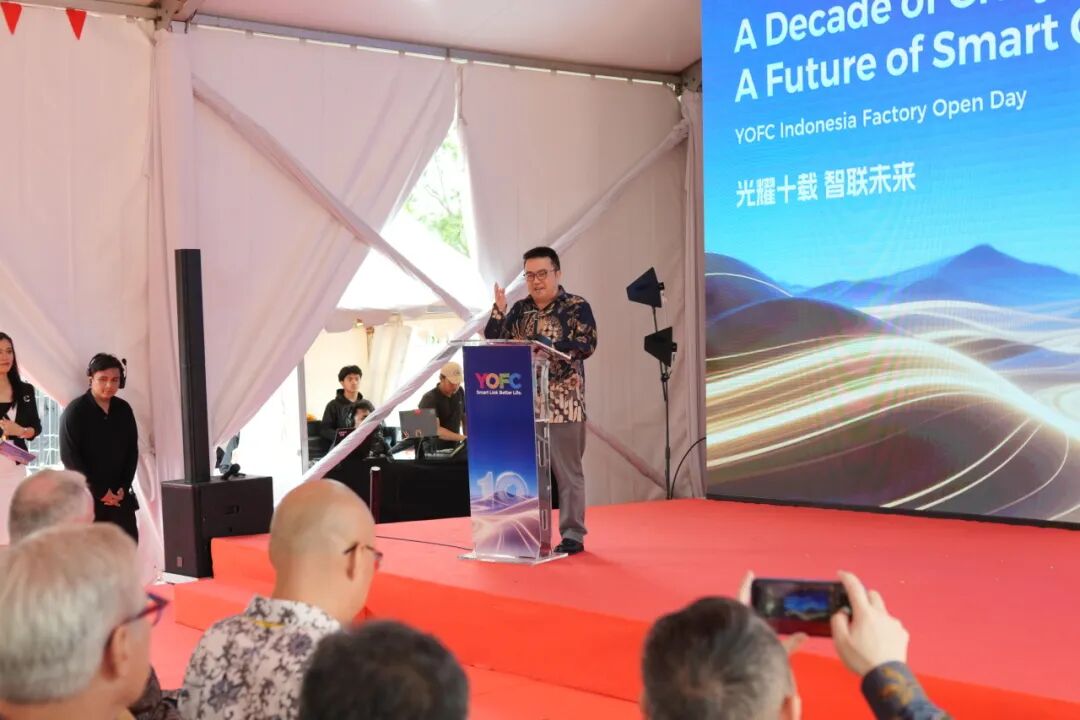 长飞印尼工厂总经理孟泉回顾了公司十年来的发展脉络与辉煌成就。从2015年建成东南亚首座光纤厂,到2017年完善光缆产业链,长飞印尼工厂已成功构建了完整的产业生态,为印尼数字基础设施建设和缩小数字鸿沟作出了切实贡献。