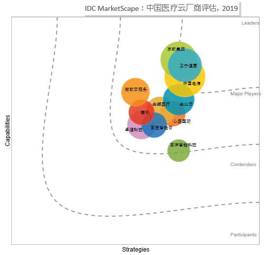 根据国际权威研究机构IDC发布的《IDC MarketScape:中国医疗云,2019厂商评估》 报告,中国电信天翼云已迈入中国医疗云“领导者”象限,成为引领中国医疗上云的 “国家队”云服务商。