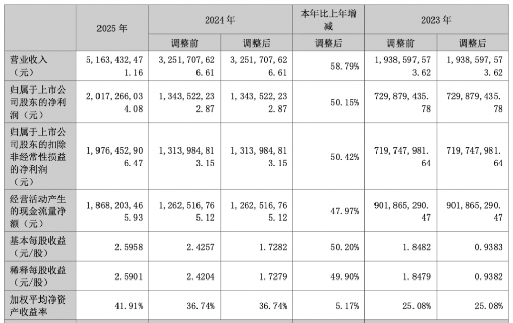 C114讯 4月7日消息(水易)今日,天孚通信公布2025年度业绩。报告期内,天孚通信实现营收51.63亿元,同比增长58.79%。归属于上市公司股东的净利润20.17亿元,同比增长50.15%;扣非净利润19.76亿元,同比增长50.42%。