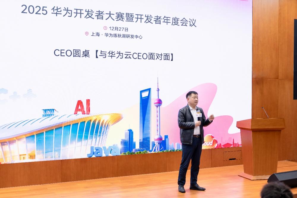 2025 年 12 月 27 日,2025华为开发者大赛暨开发者年度会议在上海华为练秋湖研发中心隆重举行。在CEO圆桌环节,华为高级副总裁、华为云CEO周跃峰和超百位开发者进行了面对面交流。这位行业老兵向全场开发者剧透了华为云的战略蓝图——华为云要携手开发者,在“黑土地”上共同打造行业 AI 的“梦工厂”,即通过构建开放的垂直领域社区,开放华为的技术能力、工具链与行业实践经验,让 AI 真正扎根产业、提升生产力。