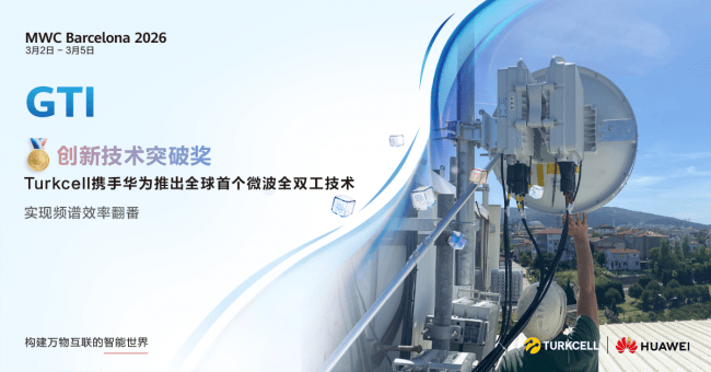 在MWC26巴塞罗那期间,土耳其Turkcell携手华为成功完成全球首个50Gbps全双工微波链路的试验和部署,并斩获GTI Awards 2026“创新技术突破奖”。