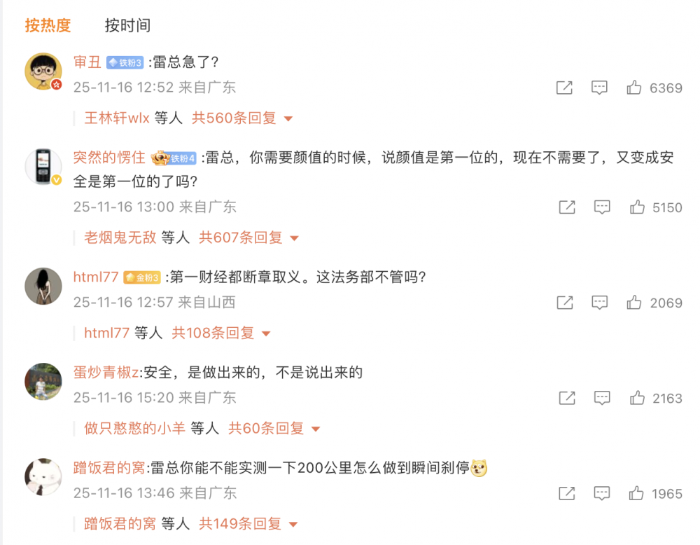 雷军这番言论,似乎是回应媒体“无论是在发布会还是访谈中,雷军谈得最多的就是设计,如何把车做好看,比如他曾在接受访谈时提到汽车设计‘最难的是做轮毂,看了5000种轮毂,把我自己看吐了。每一个轮毂背后我们都做了500个。’但是针对汽车安全方面的设计,小米却谈得甚少。”的论述。