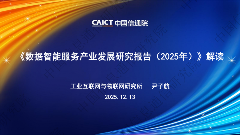 2025年12月13日下午,由中国信息通信研究院(简称“中国信通院”)主办的2026中国信通院深度观察报告会——数据智能产业创新发展专题报告会在北京成功举办。中国信通院工业互联网与物联网研究所数据与智能业务部副主任尹子航对《数据智能服务产业发展研究报告(2025年)》进行深度解读。