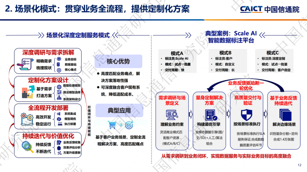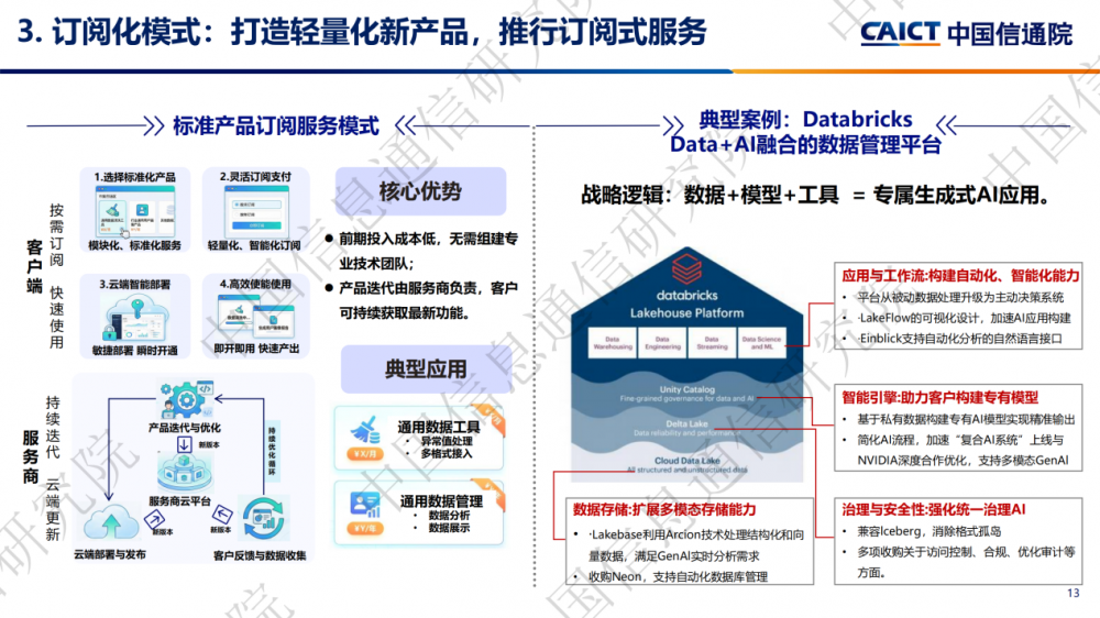 数据智能服务产业已形成平台化、场景化、订阅化、协同化四大业务模式。其中,平台化模式以平台为核心枢纽,连接数据供给方、技术服务方及行业需求方,构建高效生态。场景化模式则提供从需求调研到持续迭代的全流程定制服务,深度契合业务实际需求。订阅化模式将成熟的数据智能封装为轻量化产品,以低门槛的订阅方式便捷开放使用。协同化模式则整合政府、企业、高校等核心资源,协同应对复杂问题,实现多方共赢。