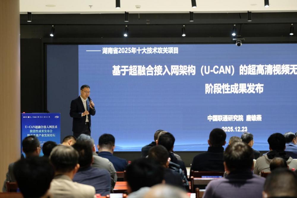 2025年12月23日,湖南省2025年十大技术攻关项目“超高清视频无损实时传输系统”阶段性成果发布会在长沙成功举办,受到湖南省政府各级领导的高度重视和大力支持。该项目由中国联通、长沙国宽、东南大学、中南大学及华为公司等企业和科研机构共同承担,在中国联通研究院副院长、首席科学家唐雄燕的带领下,致力于发展U-CAN(Ultra-Converged Access Network)超融合接入网技术,打造具有自主知识产权的高清视频传输接入设备与网络,推动“U-CAN视频承载技术应用示范区”建设,为智能时代的宽带通信产业注入新活力。