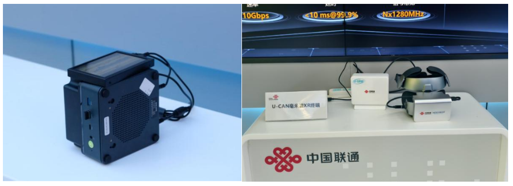 在终端设备方面,研制出集成U-CAN毫米波的无损低时延编解码设备和VR头显,解决传统视频制播中线缆负重、存储周期短、上行带宽不足等痛点。通过无损低延时编解码与帧内压缩技术,将传输时延从秒级压缩至5毫秒,结合FTTR+毫米波融合组网,在现网示范应用中实现了32点位全覆盖、万兆稳定传输与高速移动追踪不掉帧,为超高清制播提供可靠无线支撑。VR头显基于毫米波模拟波束赋形与空分复用技术,实现>10Gbps速率、<10ms@99.9%延时的高质量无线串流,使VR用户可摆脱背包式主机束缚,支持大空间、多用户并发场景,助力文旅、教育、娱乐等行业迈向沉浸式体验新阶段。