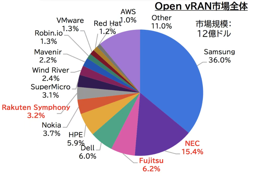 根据三菱综合研究所的数据显示,NEC在Open vRAN领域的市场份额达到15.4%,位居第二,仅次于三星。然而,尽管在这一细分领域表现突出,Open RAN在整体RAN市场中的规模仍相对有限——NEC在全球5G RAN市场的占有率仅为1.1%,这使其难逃业务调整的命运。