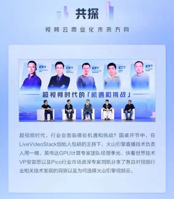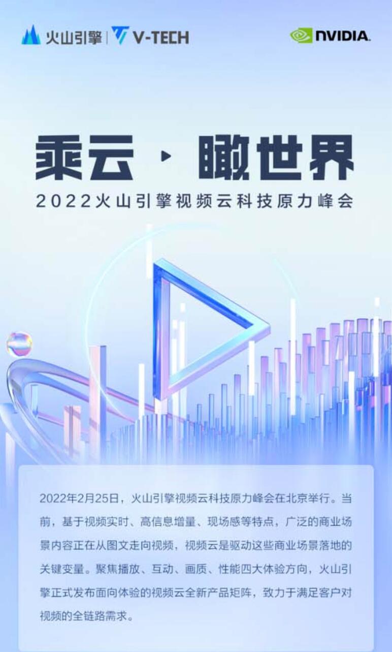 近日,火山引擎主办的视频云科技原力峰会在京举行。当前,基于视频实时、高信息增量、现场感等特点,广泛的商业场景内容正在从图文走向视频,视频云是驱动这些商业场景落地的关键变量。峰会以"乘云·瞰世界"为主题,聚焦播放、互动、画质、性能四大体验方向,火山引擎相关负责人分享了对视频体验、交互、增长的观察与思考,并发布面向体验的视频云全新产品矩阵。