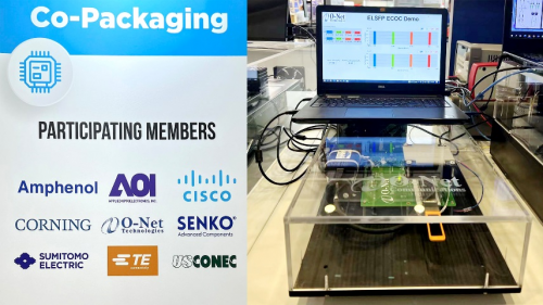 昂纳科技在展会上成功演示了其自主研发的400ZR相干光模块,以及基于光电共封架构应用的小尺寸可插拔的外部光源模块(External Laser Small Form Factor Pluggable, 简称ELSFP)。
