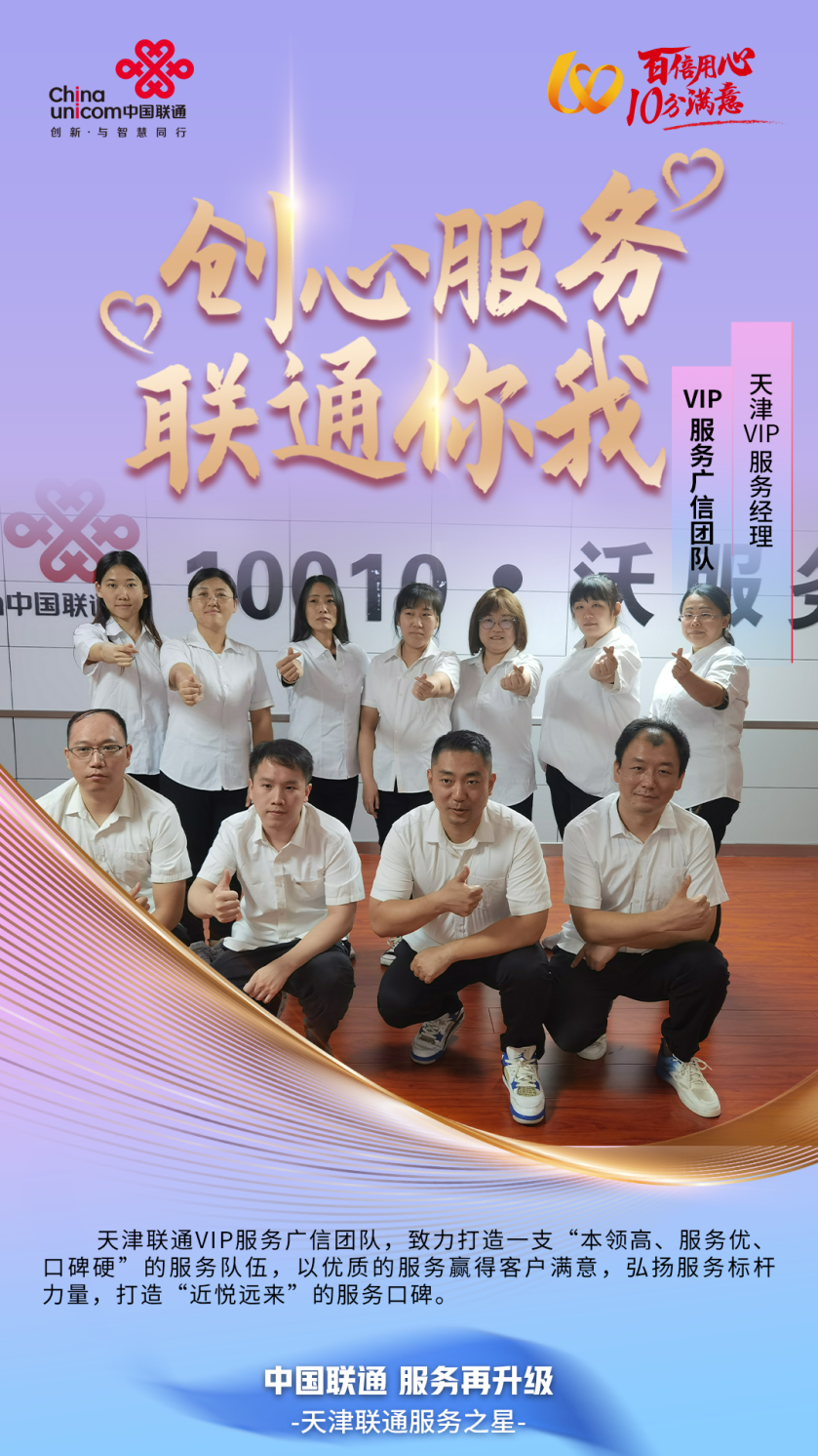 这是一个由10名VIP客户经理及1名运营主管组成的团队,他们以“本领强、服务优、口碑硬”为目标,通过匠心服务,赢得了客户的好口碑,成为优质服务标杆团队。他们在服务之星评比中保持排名第一,各项指标始终名列前茅。他们就是天津联通服务之星、VIP客户经理广信团队1组。