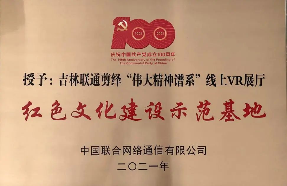 2021年,建党百年之际,四平联通政企运营中台BU参与协助四平市委、吉林师范大学、吉林日报社客户,开发“剪绎伟大精神谱系联通VR展厅”,以非物质文化遗产“松辽剪纸”为载体,将伟大建党精神剪纸作品以3D VR数字形式展出,“图+文+音”线上完美呈现将时代精神具体化、形象化。