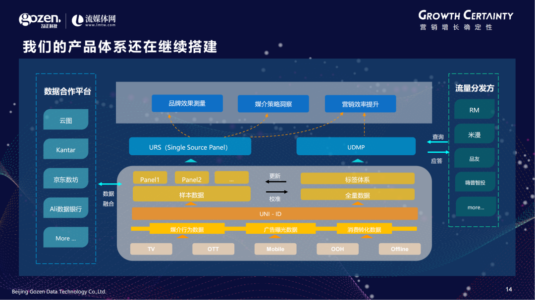 勾正科技的产品体系还在继续搭建,我们的能力主要基于URS(Single Source Panel)和UDMP,然后不断往上搭建、往下不断输出。
