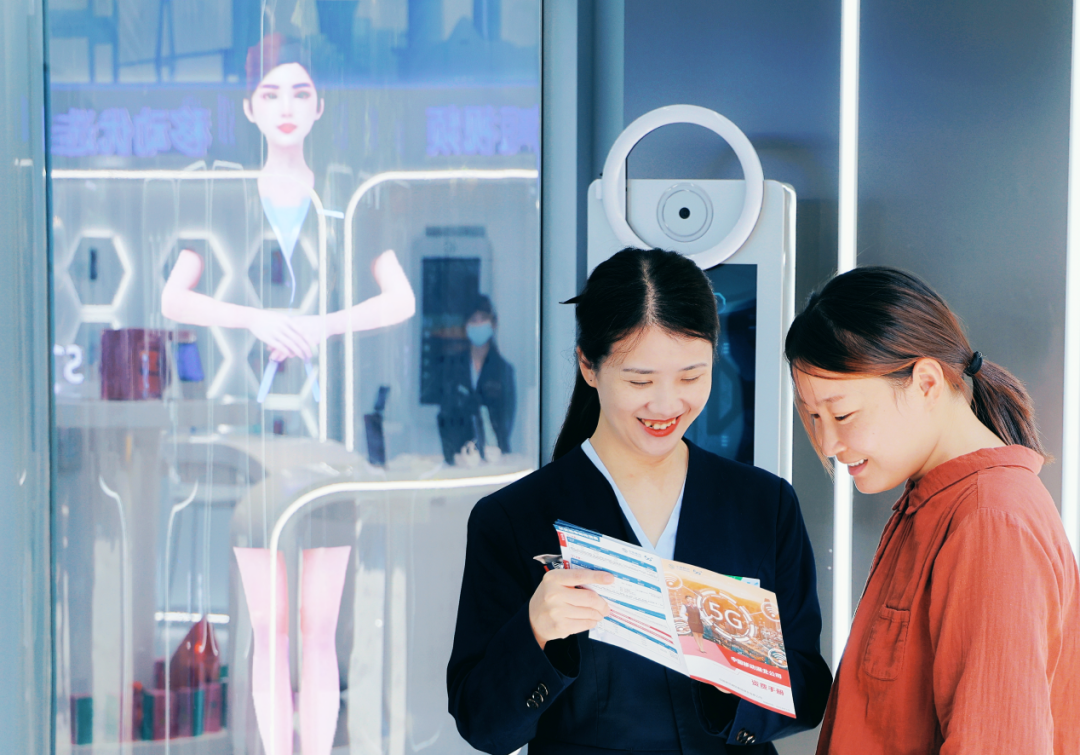 为推进5G全民化,今年5月,湖北移动打造了华中首个5G元宇宙营业厅,让消费者切身地感受到5G特色应用。在5G元宇宙营业厅,市民可以同5G数字虚拟营业员“荆小楚”趣味互动,还能够借助VR眼镜体验未来城市交通、在AIGC画廊尽情放飞幻想作画、体验5G新通话的便捷等。