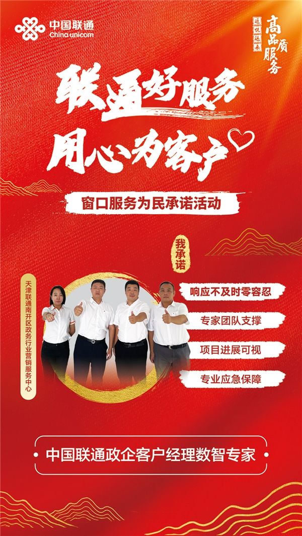 南开分公司政务行业要客服务中心团队真诚待人、用心服务,让客户感受到一扇扇打开的窗口。他们齐聚一心、不畏艰难,用心解决每一位客户的燃眉之急。他们坚持服务引领,创新同行,齐心协力为客户提供高品质服务,持续擦亮联通品牌。