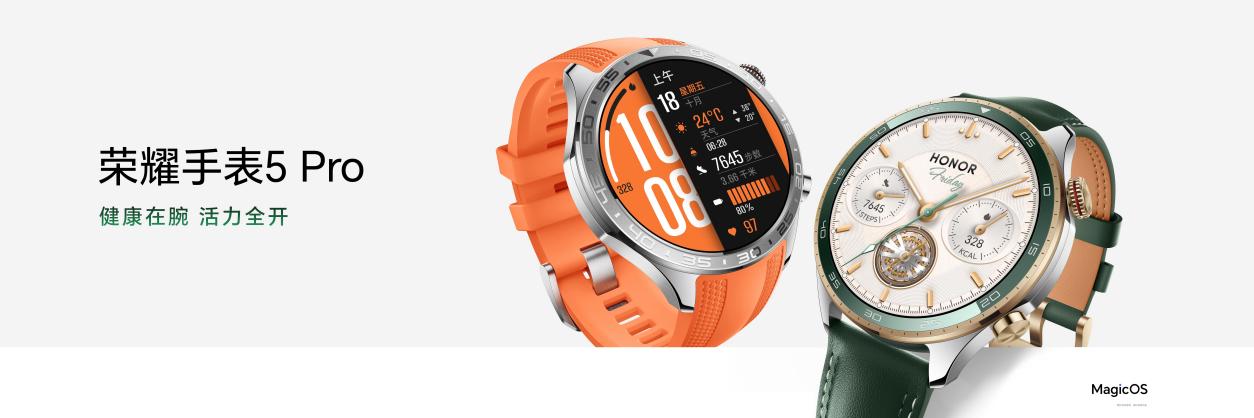 目前,荣耀手表5 Pro已开启首销,共有蓝牙和eSIM两个版本可选,其中蓝牙版本,攀登者(橙色)、开拓者(黑色)、远航者(灰色)首销国补优惠价1359.2元;eSIM版本,天文家(黑色)首销国补优惠价1444.2元,探秘家(绿色)首销国补优惠价1614.2元。首销期荣耀Magic系列用户,攀登者、开拓者、远航者专享国补优惠价1189.2元,天文家专享国补优惠价1274.2元,探秘家专享国补优惠价1444.2元。