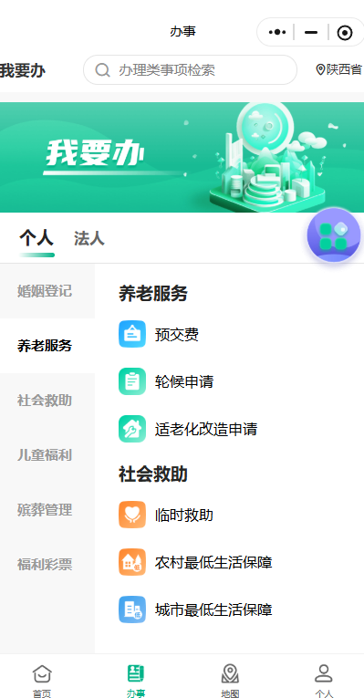 陕西省内的老年人或者监护人如果想要入住或咨询养老机构、养老服务,可以打开“秦养老”小程序,随时查看周边养老机构、养老服务等信息,并进行线上咨询和服务订购,极大简化了老年人入住养老机构的信息收集成本。同时系统还上线了“15分钟便民生活圈”,极大方面老年人便捷查找周边服务。