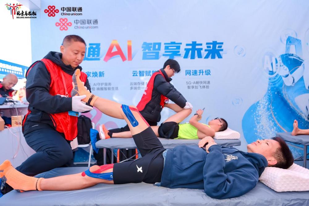 围绕赛前筹备与赛后恢复关键环节,中国联通构建了全链条贴心服务体系:为联通用户开通专属参赛名额申领通道,中签跑者可获赠专属参赛包,以仪式感开启奔跑之旅;中国联通APP上线“领跑行动”专区,整合报名、照片下载等功能,提供“一站式”便捷服务。赛后在终点设置专属拉伸区、冰水沐足区,配套号码簿塑封、赛后补给等服务,全方位助力跑者科学恢复。
