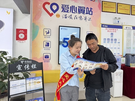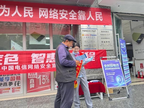网络安全宣传周期间,中国电信同仁营业厅以“爱心翼站”为服务载体,将网络安全宣传与便民服务深度融合,在同仁市热贡广场及辖区内主要营业厅同步启动多维度防诈宣传活动,为群众筑牢网络安全“防护墙”。