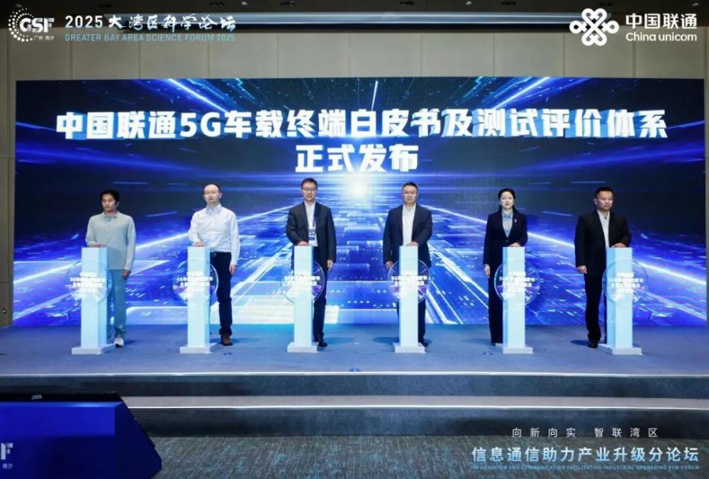 近日,2025大湾区科学论坛在广州南沙举办,在信息通信助力产业升级分论坛上,联通智网科技联合中国联通研究院、国汽智联、华瑞赛维、威尔克、广东联通等行业伙伴发布《中国联通5G车载终端白皮书》(简称《白皮书》)及车载终端网络性能测试评价体系(简称“测试评价体系”),为产业提供科学的参考标准与依据,助力智能网联汽车产业规模化发展。