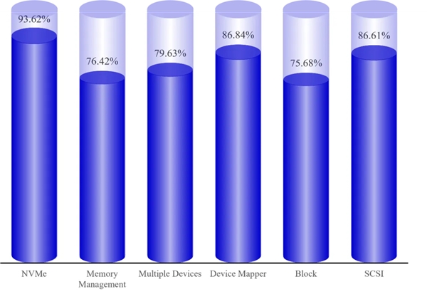 以深信服 kernel 历史 tag 版本人工分析报告为基线真值,按模块选取数百条 commit 验证,结果如下: