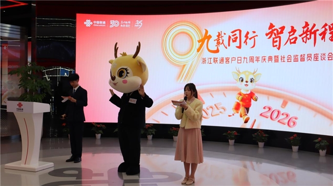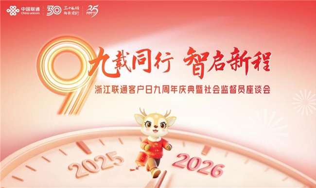 2025年12月24日,浙江联通“客户日”九周年庆典暨社会监督员座谈会在杭州举办。本次活动以“九载同行,智启新程”为主题,社会监督员、特邀客户与工作人员欢聚一堂,共同见证“客户日”九周岁,展望服务升级与数字生活新愿景。活动现场通过成果发布、产品展示、服务体验等多元环节,生动诠释了“客户日”品牌的初心和内涵。