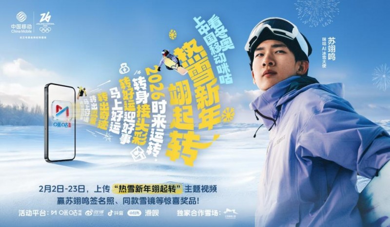 同时,苏翊鸣作为咪咕“AI冰雪大使”,还将携手咪咕发起“热雪新年翊起转”挑战赛。2月2日-23日,用户可在多个社交平台,以“转”为灵感,通过手势舞、雪场炫技、趣味转场等创意形式,定格“转”的创意瞬间,与苏翊鸣一同开启这个热“雪”新年,见证赛场内外每一个奇迹时刻!