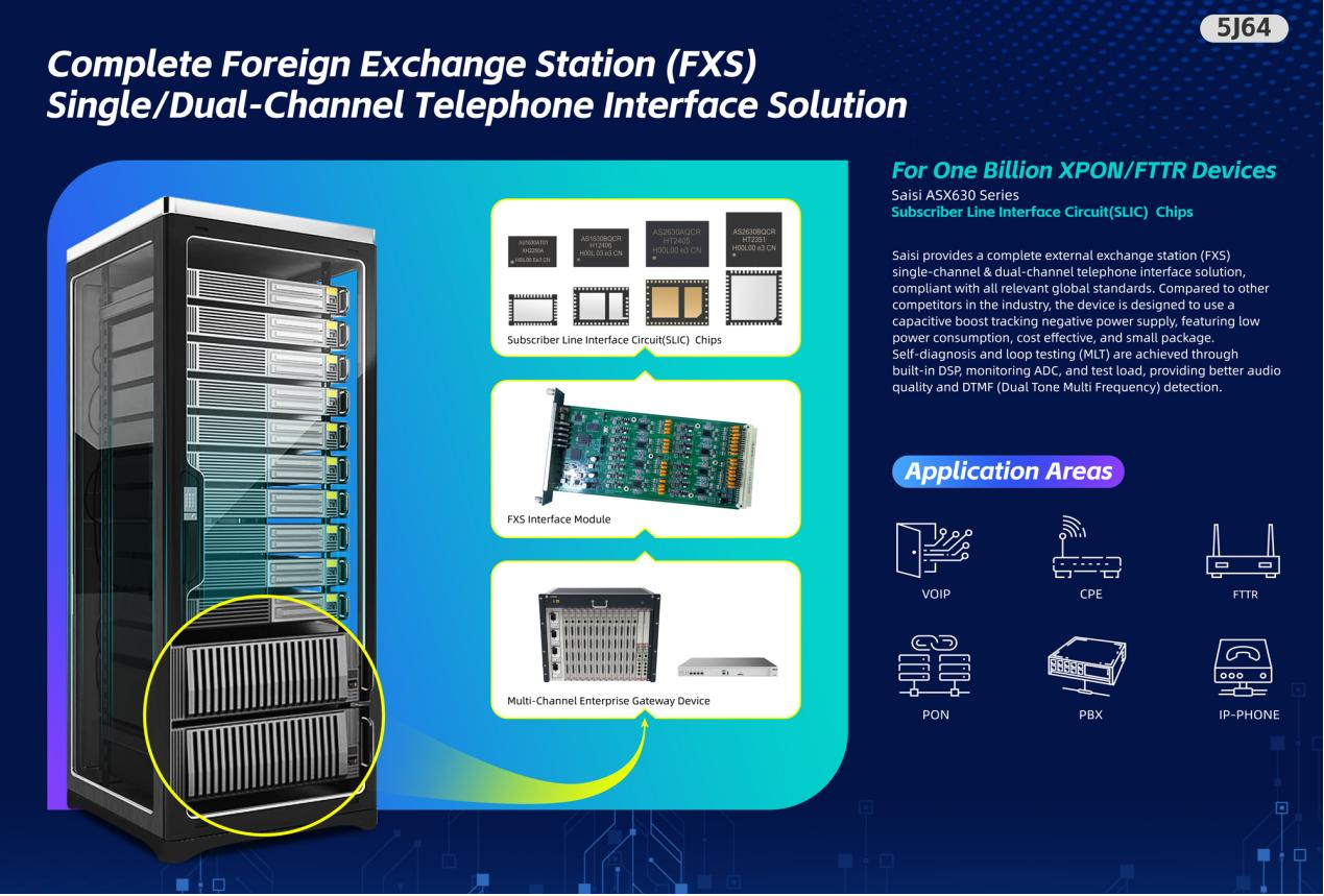 此次参展,赛思电子展品矩阵紧扣展会主题,聚焦核心通信与时频同步领域,尽显国产硬科技实力。在语音通信板块,赛思将展出完整外部交换站(FXS)单/双路电话接口解决方案、以及适配10亿PON/FTTR设备的AS1630、AS2630等多款国产SLIC语音芯片核心产品。作为国内首款国产SLIC语音芯片研发者,赛思打破国外厂商技术垄断,实现核心通信芯片的国产替代,为通信终端设备提供高稳定性、高性价比的国产芯选择。
