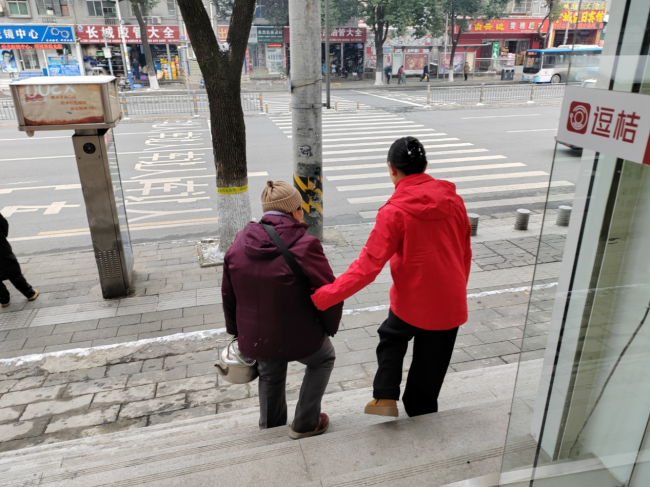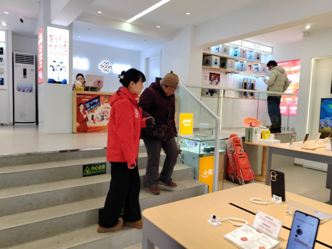 当天上午,一位年近七旬的老人缓缓走向白浪汽配城附近的中国联通营业厅。望着门前那几级台阶,老人有些犹豫——腿脚不便的他,每上一级台阶都需要格外小心。就在这时,营业厅内正在值班的小谭注意到了这一幕。她立即放下手头工作,快步走出门外:“阿姨,您慢点,我来扶您。”小谭伸出双手,稳稳托住老人的手臂,一步一步将他搀扶进营业厅。