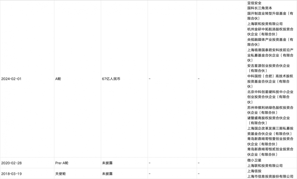 2024年2月的A轮融资更是创下国内商业卫星领域单轮融资规模纪录,完成67亿元融资。14家投资方中,国开制造业转型升级基金(规模501亿元)作为领投方,叠加13家产业与财务投资者,直接推动企业进入卫星组网发射的关键阶段。