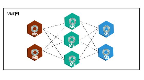 在水平层次上,VNF内部的微服务间存在业务流程关联,存在相互影响的关系,微服务间横向关联用作发现出问题根本原因的微服务,如图2。