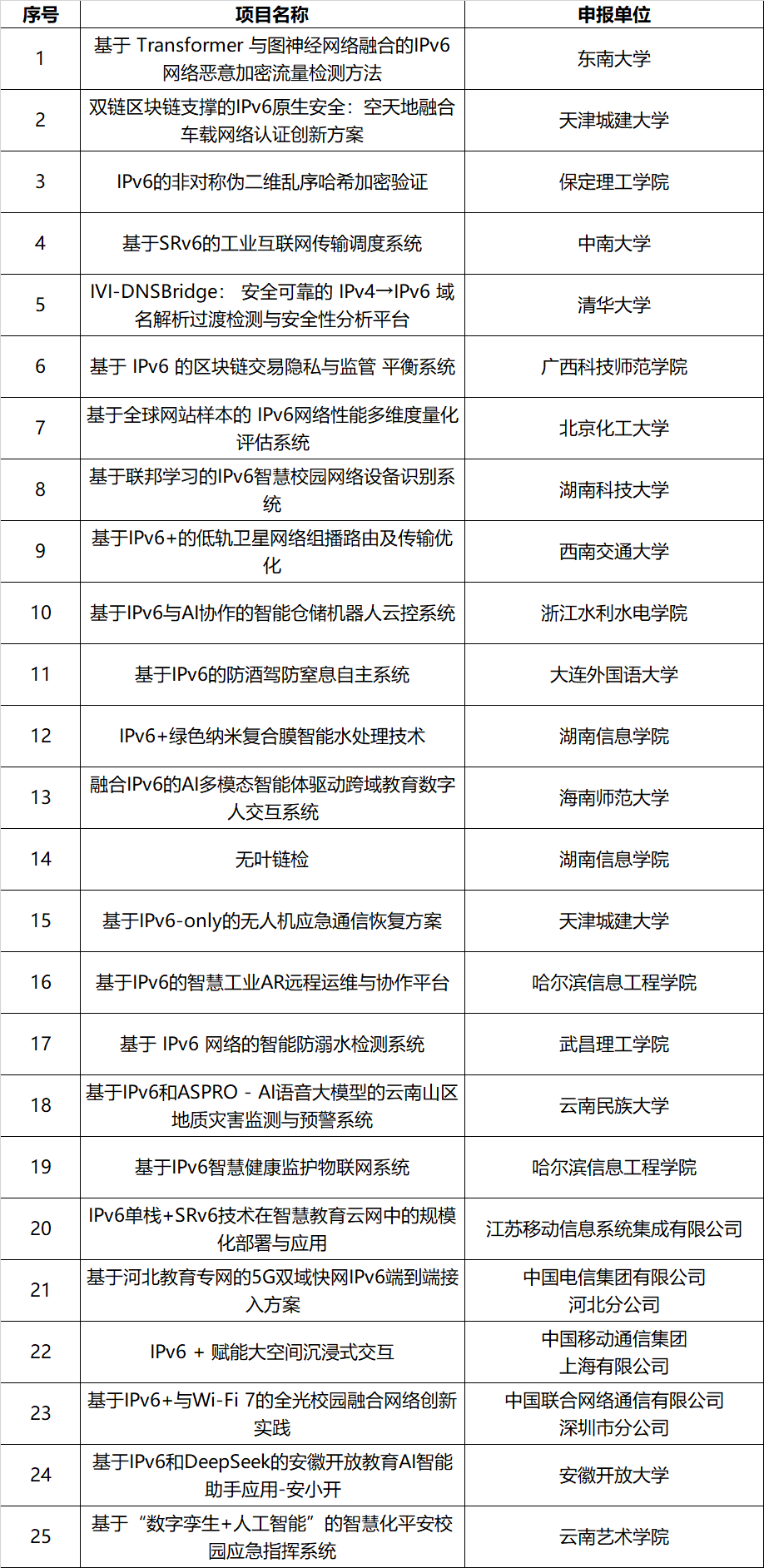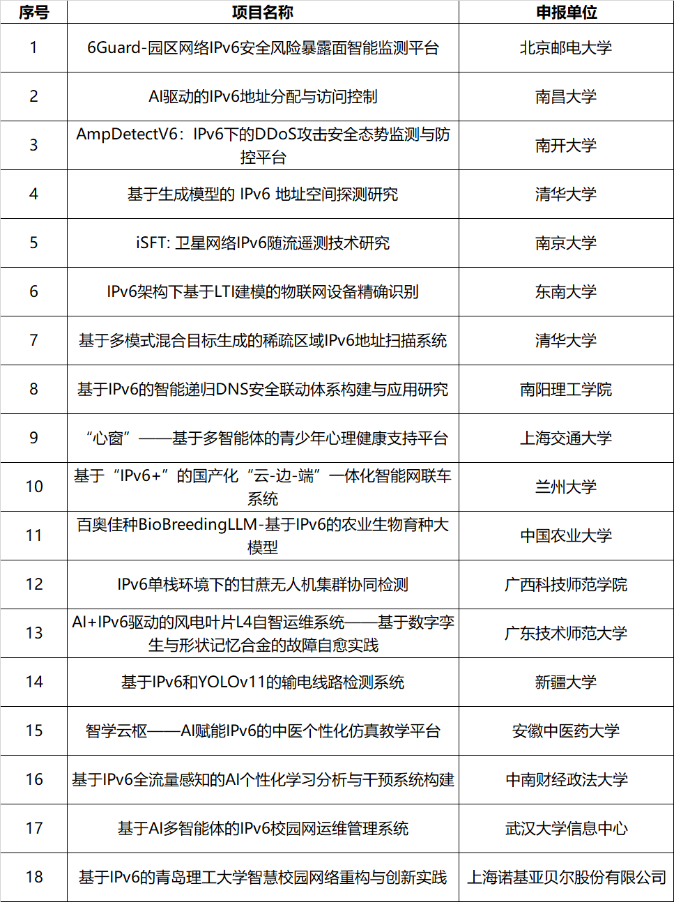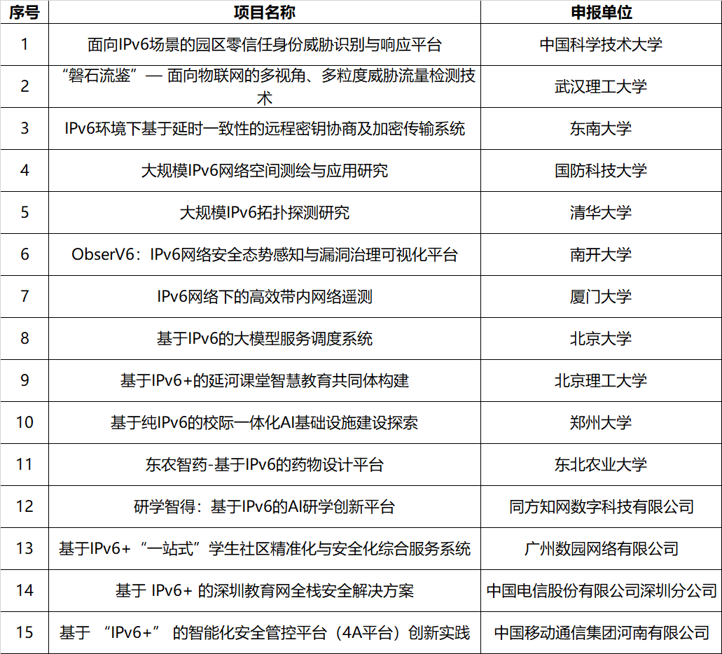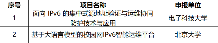 “第三届IPv6技术应用创新大赛科教赛道暨第八届下一代互联网技术创新大赛”获奖项目名单: