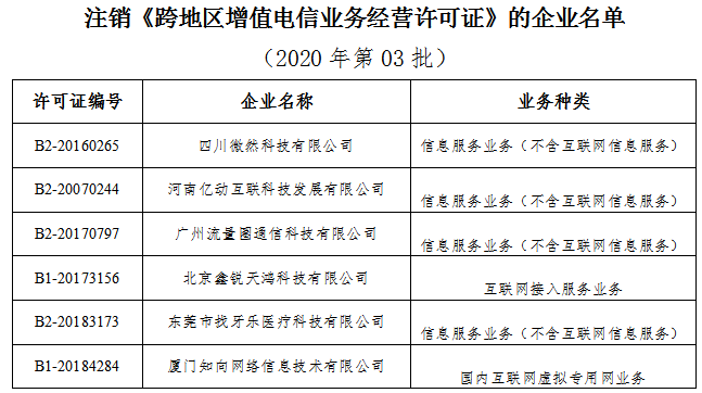 附:注销《跨地区增值电信业务经营许可》的企业名单(2020年第03批)