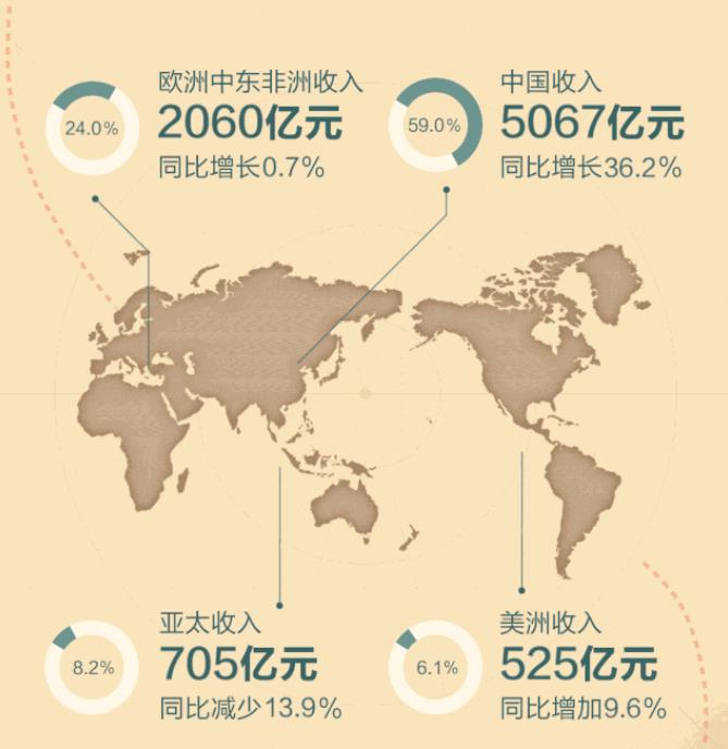 分区域收入情况来看,2019年,中国区业务保持快速增长,美洲和EMEA维持稳定增长,亚太区受到运营商市场投资周期波动及消费者业务海外GMS生态影响同比下降。具体来看,中国区收入5067亿元,同比增长36.2%;欧洲中东非洲区收入2060亿元,同比增长0.7%;亚太区收入705亿元,同比减少13.9%;美洲区收入525亿元,同比增加9.6%。