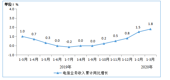 报告还称,固定增值及其他收入加快增长,持续为电信业务收入增长注入新活力。电信企业积极发展互联网数据中心、大数据、云计算、人工智能等新兴业务,拉动固定增值及其他业务的收入较快增长。一季度,三家基础电信企业完成固定增值业务收入为439亿元,同比增长18.9%,增速较1-2月提高2.2个百分点,拉动电信业务收入增长2.1个百分点。
