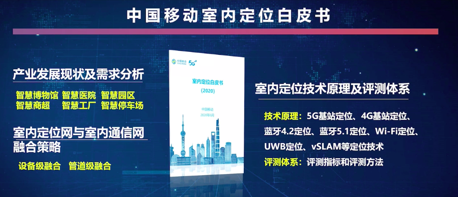 丁海煜表示,当前5G被列为新基建之首,5G网络建设进入快车道,中国移动也明确了“5G+”战略,室内定位能力作为“5G+”战略的一项重要外延能力,可以在5G室内通信网络建设中充分融合,结合5G室内网络建设契机,同步完成室内定位网络建设,拓展“5G+”业务全新的网络能力,服务于千行百业。