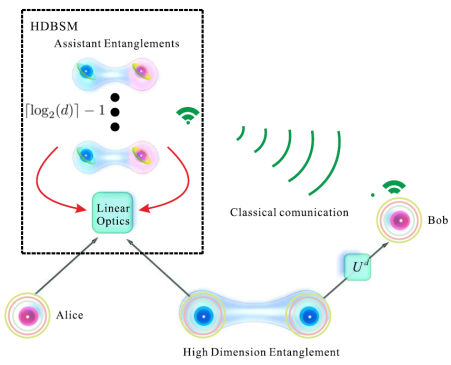 图1、纠缠辅助的高维量子隐形传态示意图(中国科大新闻网)