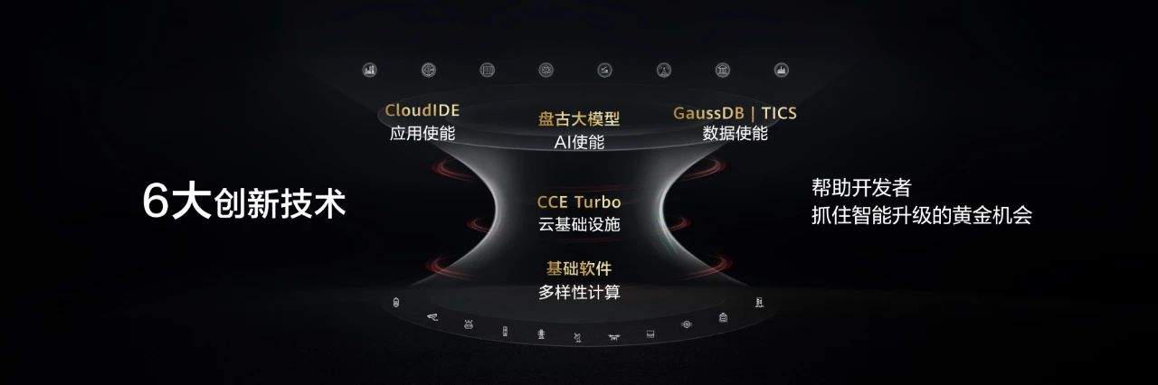 华为此次发布的6大创新产品及服务,包括华为云CCE Turbo容器集群、CloudIDE智能编程助手、GaussDB(for openGauss)数据库、可信智能计算服务TICS、华为云盘古系列大模型(包含全球最大规模的中文NLP大模型及CV大模型等)、多样性计算基础软件,为开发者提供技术支持,并使能开发者提升开发效率和质量。