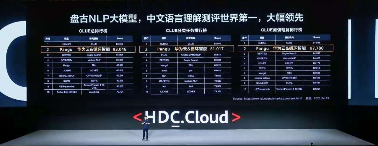 华为云盘古NLP大模型在中文语言理解测评中,在总榜、分类榜、阅读理解榜获得三项第一,大幅刷新业界纪录。总排行榜领先第二名1分,这是什么概念?就如同百米赛跑的世界纪录,每次0.01秒的突破,都是在超越极限。
