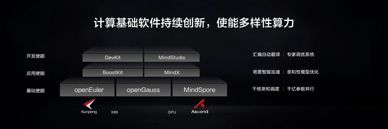 我们会坚定不移的,在操作系统、数据库、AI计算框架等全套计算基础软件栈上持续投入,使能多样性算力,支撑华为云的产品和服务创新。