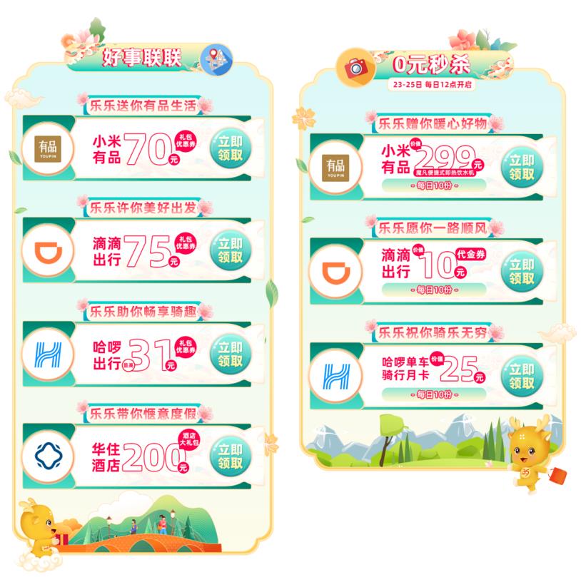 最美人间四月天,春光无限谁不想出游一番呢!在这个四月,浙江联通客户日首席福利官乐乐携手滴滴出行、哈啰出行、小米有品、华住以出行与看家双维度宠爱用户,与全省共计18.5万用户一起享阳光中的朝气,领超多福利品人间最美四月天!