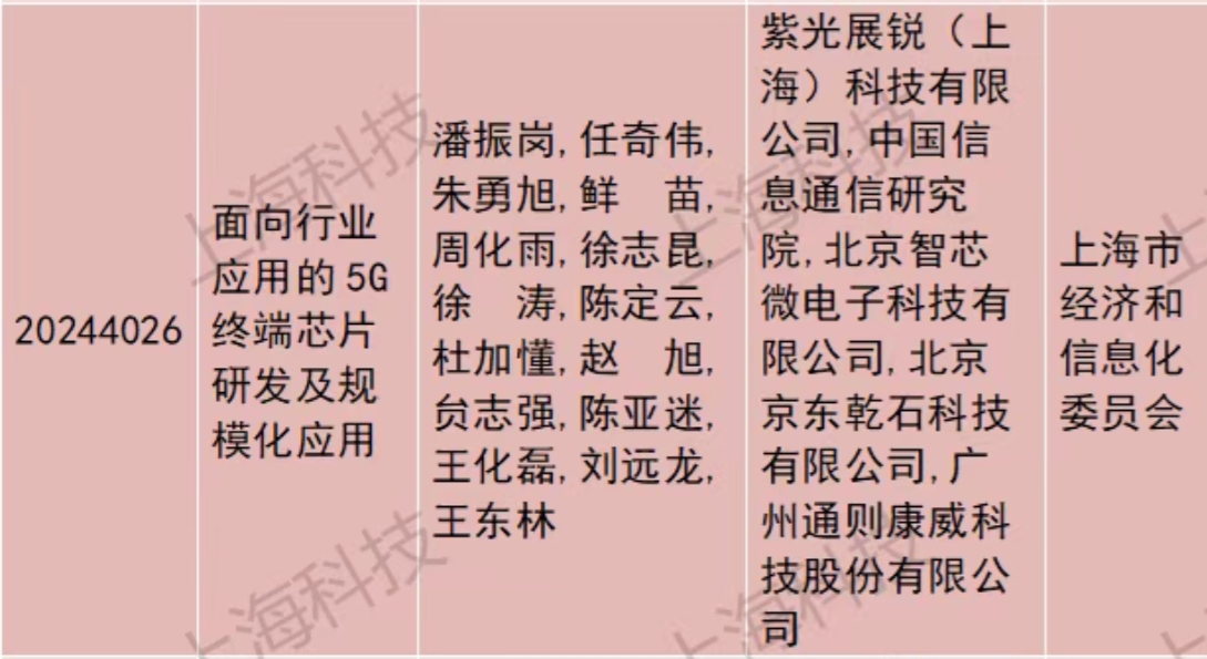 主要完成人包括紫光展锐的潘振岗、任奇伟、朱勇旭、鲜苗等。