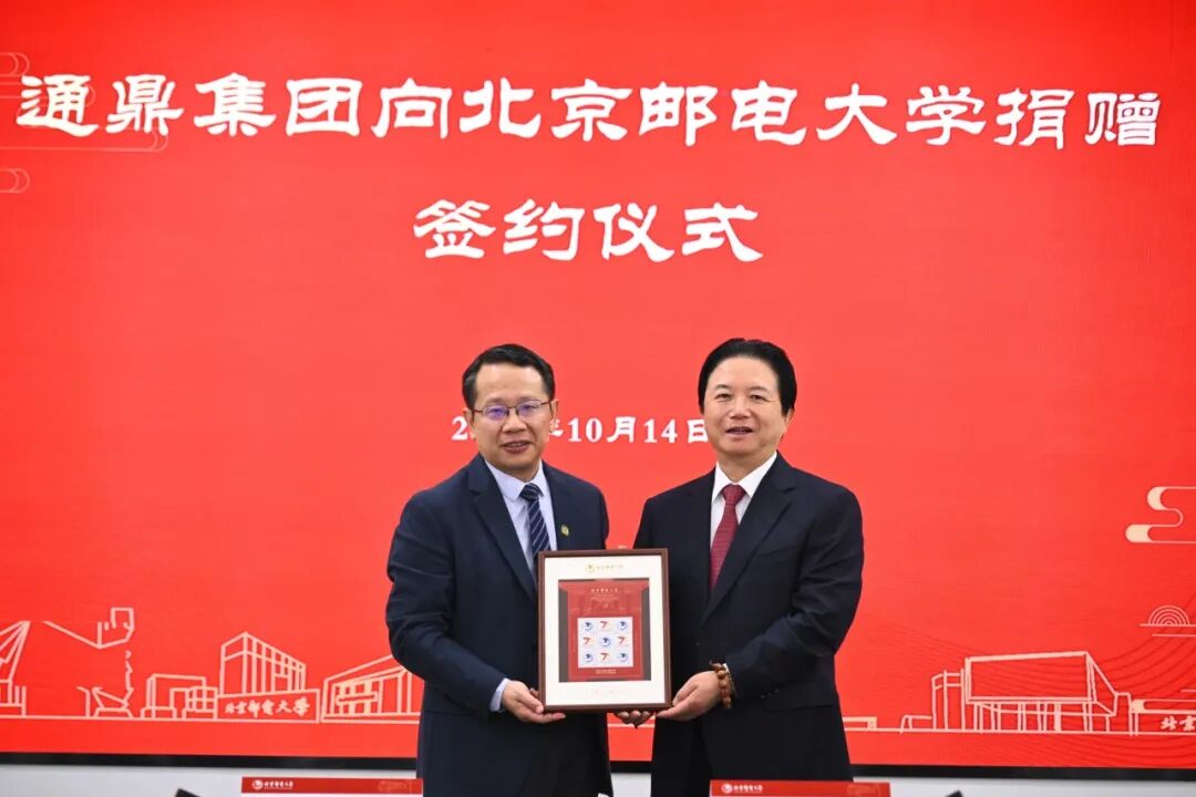 金秋迎盛事,校企谱新篇。10月14日上午,通鼎集团向北京邮电大学捐赠签约仪式在北京邮电大学隆重举行。北京邮电大学校长徐坤,副校长、教育基金会理事长任雄飞,通鼎集团董事长沈小平、总经理钱慧芳等出席仪式。北京邮电大学教育基金会秘书长张畅郁主持仪式。