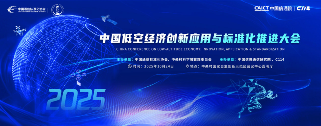 鉴于此,中国通信标准化协会、中关村科学城管委会主办,中国信息通信研究院、C114联合承办了“中国低空经济创新应用与标准化推进大会”,将于2025年10月24日在中关村国家自主创新示范区会议中心举办。
