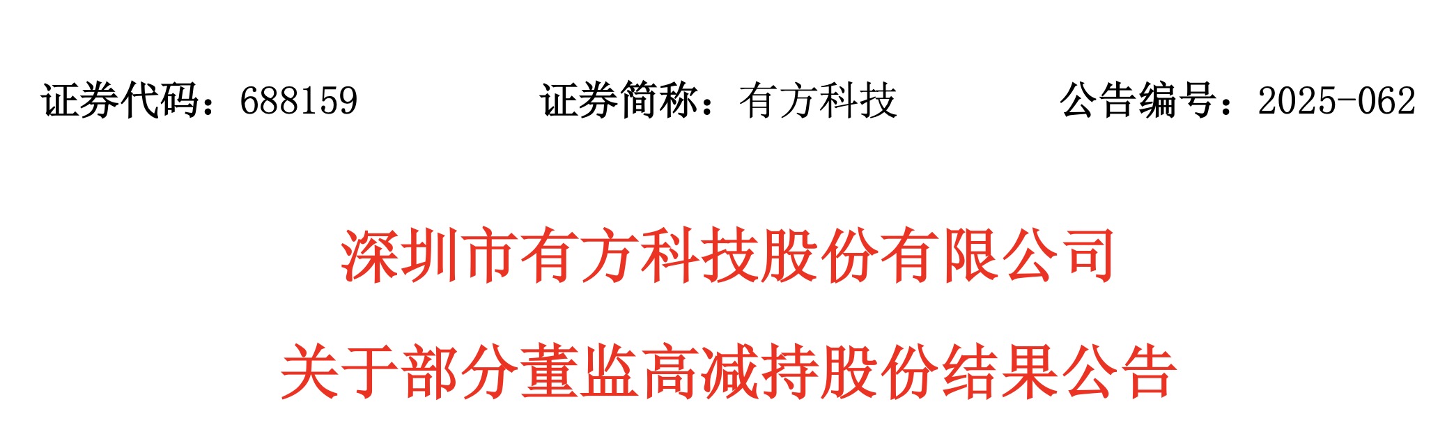 C114讯 10月22日消息(南山)昨日晚间,深圳市有方科技股份有限公司发布了《关于部分董监高减持股份结果公告》。