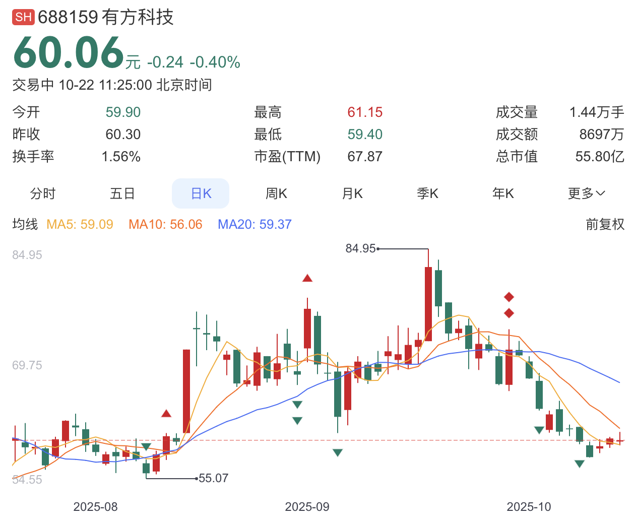 截至发稿,有方科技最新市值55.80亿元,今年以来股价上涨了100%。