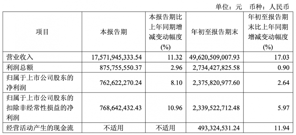 2025年前三季度,亨通光电实现营业收入496.21亿元,同比增长17.03%;归属于上市公司股东的净利润23.76亿元,同比增长2.64%;归属于上市公司股东的扣除非经常性损益的净利润23.40亿元,同比增长5.97%。