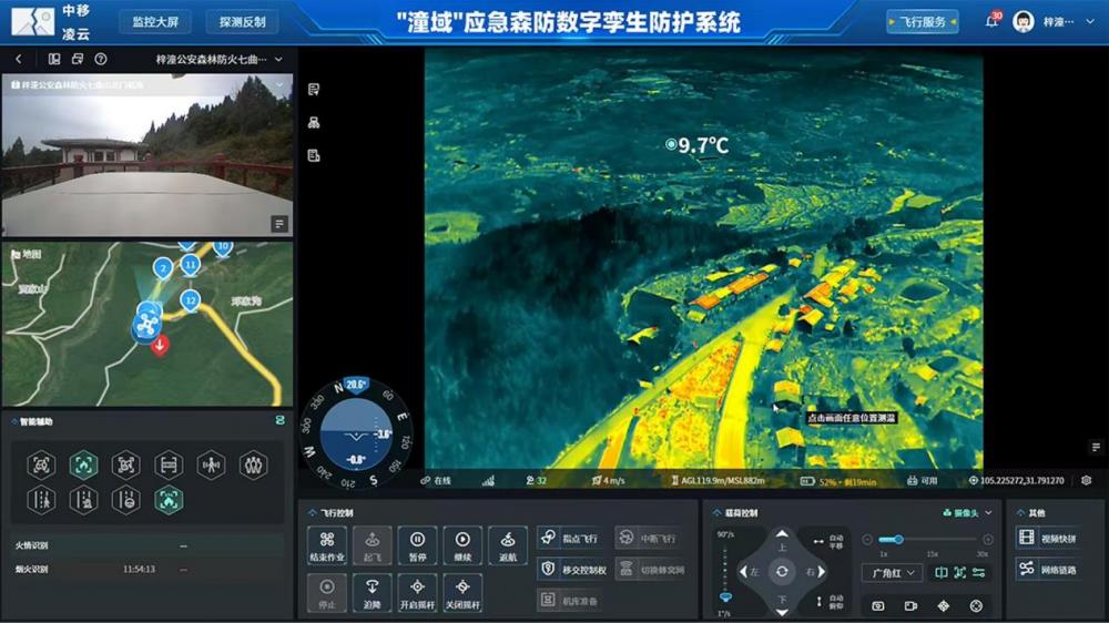 在拥有千年古柏林的绵阳市梓潼县七曲山景区,传统人工巡护因覆盖有限、响应滞后难以满足现代森防需求。为此,中国移动四川绵阳分公司携手梓潼县公安局、西南科技大学打造“潼域森防系统”。该系统深度融合低空网联无人机与数字孪生技术,构建了“感知-巡查-处置”的全流程闭环管理机制。