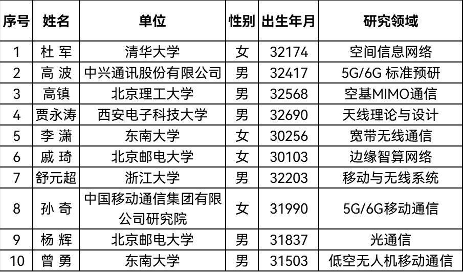 此外,2025年中国通信学会青年科技奖共授予10位杰出青年学者,获奖者平均年龄约37岁,中兴通讯和中国移动研究院的专家也榜上有名。